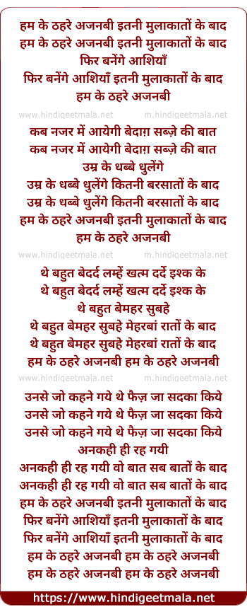 Lyrics of Hum Ke Thahre Ajnabi - हम के ठहरे अजनबी इतनी मुलाकातों के बाद