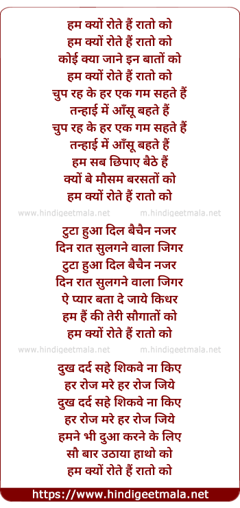 Lyrics of Hum Kyu Rote Hai Rato Ko - हम क्यों रोते हैं रातो को
