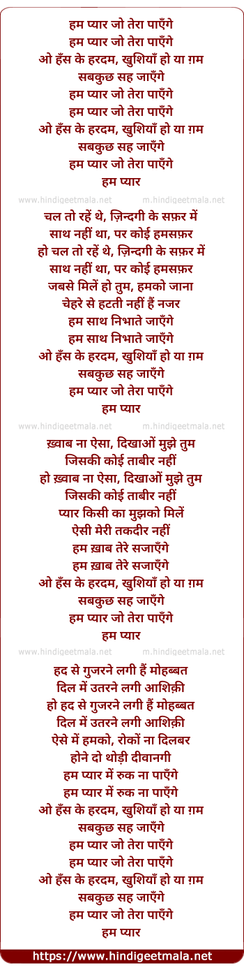 Lyrics of Hum Pyar Jo Tera Paayenge (Duet) - हम प्यार जो तेरा पाएँगे
