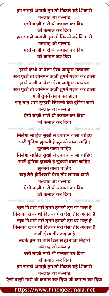 Lyrics of Hum Samjhe Anadi - हम समझे अनाड़ी