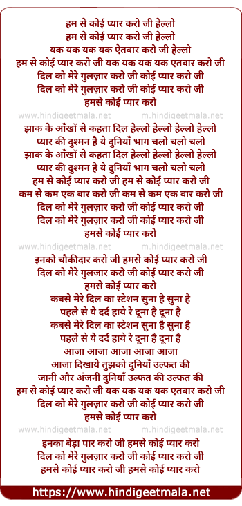 Lyrics of Hum Se Koi Pyar Karo Ji - हम से कोई प्यार करो जी