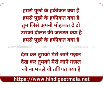 Lyrics of Hum Se Pucho Ki Haqiqat Kya Hai - हमसे पूछो के हकीकत क्या है