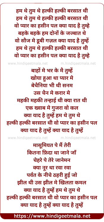 hum the tum the halki halki barsat thi