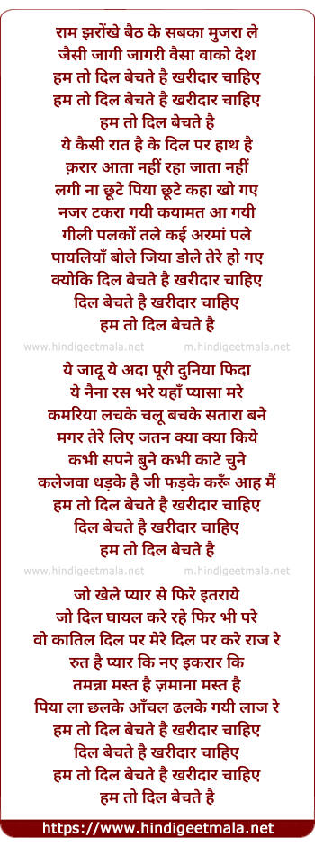 Lyrics of Hum To Dil Bechte Hai - हम तो दिल बेचते है