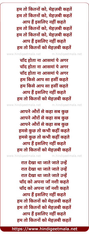 Lyrics of Hum To Kitno Ko - हम तो कितनों को, मेहज़बी कहतें