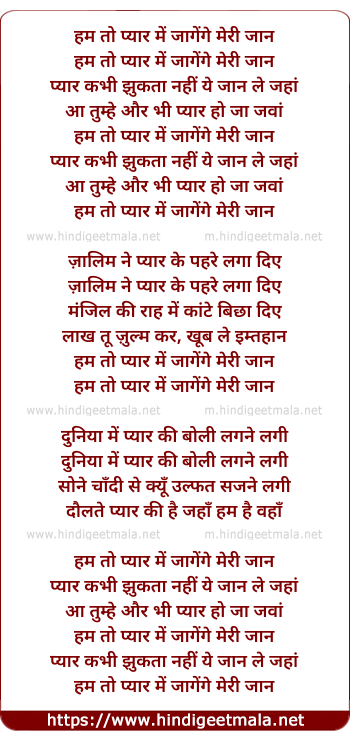 Lyrics of Hum To Pyar Me Jagenge Meri Jan - हम तो प्यार में जागेंगे मेरी जान