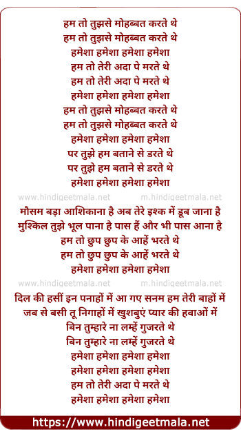 Lyrics of Hum To Tujhse Mohabbat - हम तो तुझसे मोहब्बत