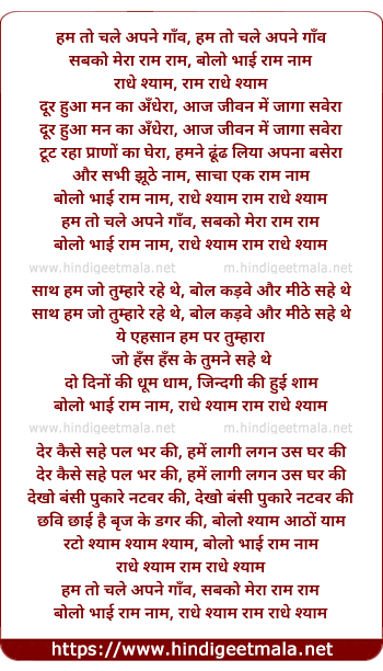 Lyrics of Hum To Chale Apne Gaaon - हम तो चले अपने गाँव