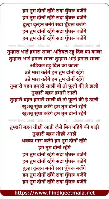 Lyrics of Hum Tum Dono Rahenge Sada Ghunghru Bajenge - हम तुम दोनों रहेंगे सदा घुँघरू बजेंगे