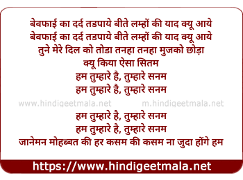 Lyrics of Hum Tumhare Hai Tumhare Sanam (Sad) - हम तुम्हारे है तुम्हारे सनम