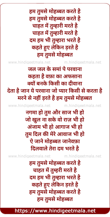 Lyrics of Hum Tumse Mohabbat Karte Hai - हम तुमसे मोहब्बत करते है