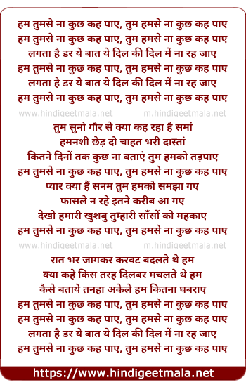Lyrics of Hum Tumse Na Kuch Keh Paye - हम तुमसे ना कुछ कह पाए