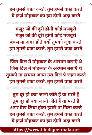 Lyrics of Hum Tumse Wafa Karte - हम तुमसे वफ़ा करते