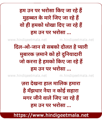 Lyrics of Hum Un Par Bharosa Kiye Ja Rahe Hai - हम उन पर भरोसा किए जा रहे हैं