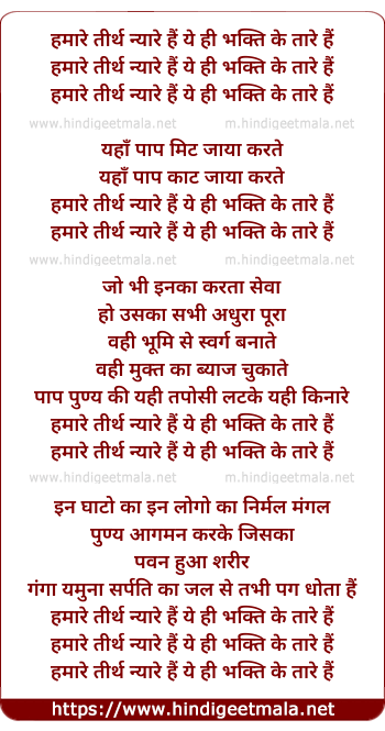 Poetic Translation - Lyrics of Humare Tirth Nyare Hai