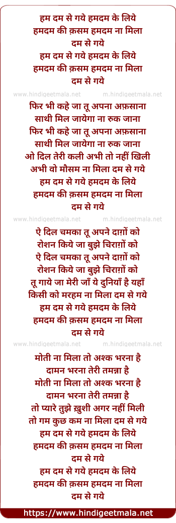 Lyrics of Humdam Se Gaye Humdam Ke Liye - हम दम से गये हमदम के लिये