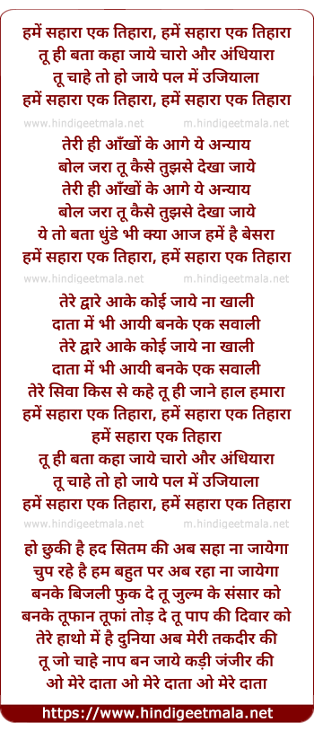 Lyrics of Hume Sahara Ek Tihara - हमें सहारा एक तिहारा