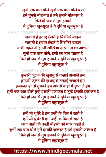 Lyrics of Humen Tumse Mohabbat Hai - हमे तुमसे मोहब्बत है
