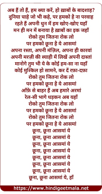 Lyrics of Humko Chhoona Hai Yeh Aasman - हमको छूना है यह आसमान
