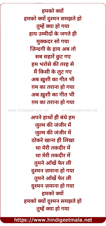 Lyrics of Humko Kyun Dushman Samajhte Ho - हमको क्यों