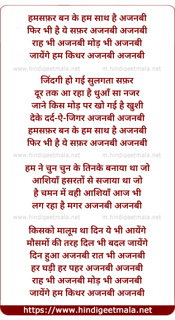 Lyrics of Humsafar Ban Ke Hum Saath Hai - हमसफ़र बन के हम साथ है