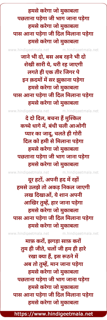 Lyrics of Humse Karega Jo Muqabla (2) - हमसे करेगा जो मुकाबला
