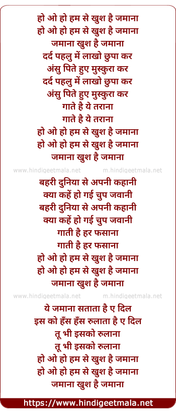 Lyrics of Humse Khush Hai Zamana - हो ओ हो हम से खुश है जमाना