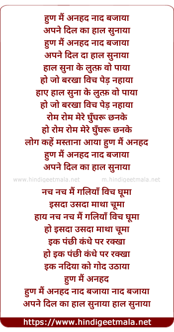 Lyrics of Hunn Main Anhad Naad Bajaya - हुण मैं अनहद नाद बजाया