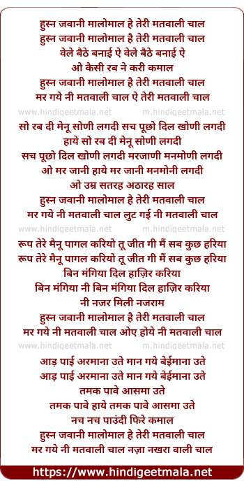 Lyrics of Husn Jawani Malomal Hai Teri Matwali Chal - हुस्न जवानी मालोमाल है तेरी मतवाली चाल