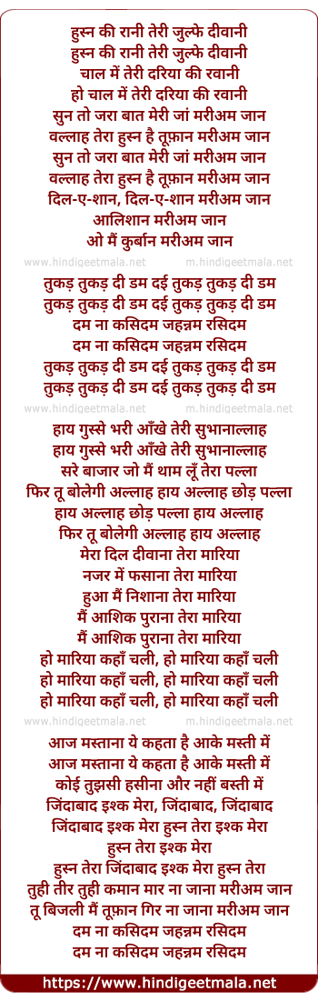 Lyrics of Husn Ki Rani Teri Julfe Diwani - हुस्न की रानी तेरी जुल्फे दीवानी