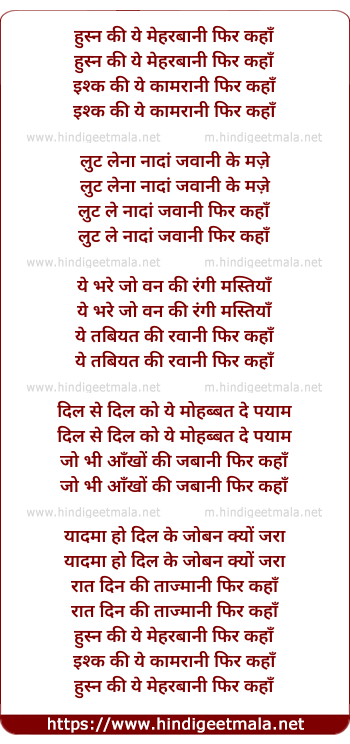 Lyrics of Husn Ki Ye Meharbani Phir Kaha - हुस्न की ये मेहरबानी फिर कहाँ