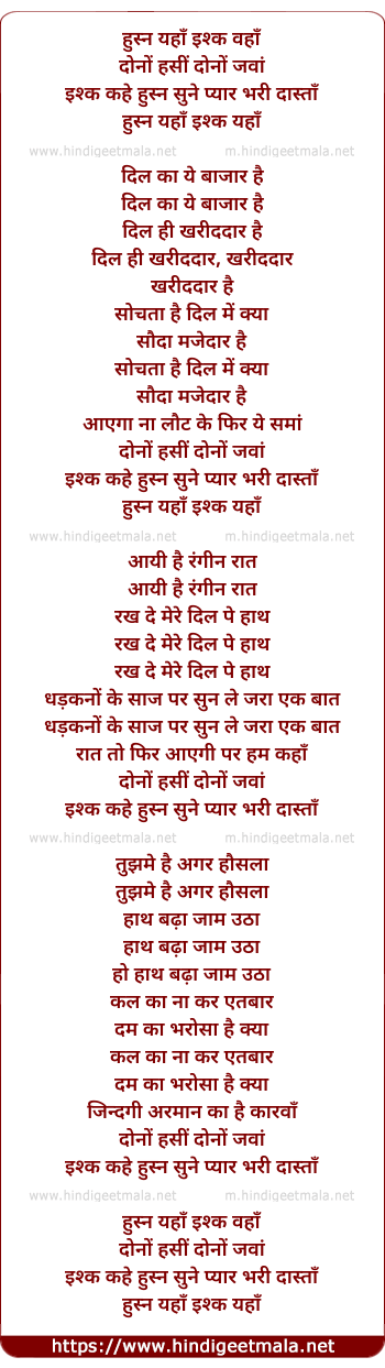 Lyrics of Husn Yaha Ishq Yaha - हुस्न यहाँ इश्क वहाँ