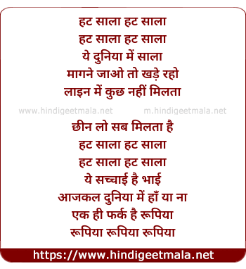 Poetic Translation - Lyrics of Hut Saala - हट साला