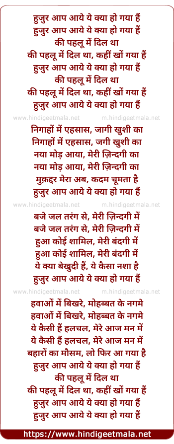 Lyrics of Huzur Aap Aaye - हुजुर आप आये ये क्या हो गया हैं