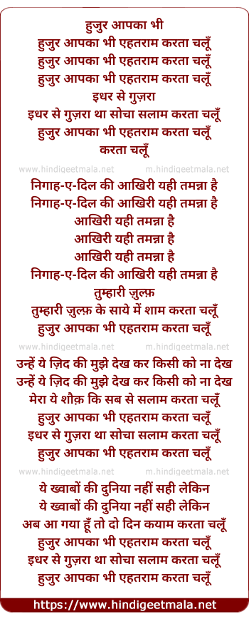Lyrics of Huzur Aap Ka Bhi Ehtaram Karta Chalu - हुजुर आपका भी