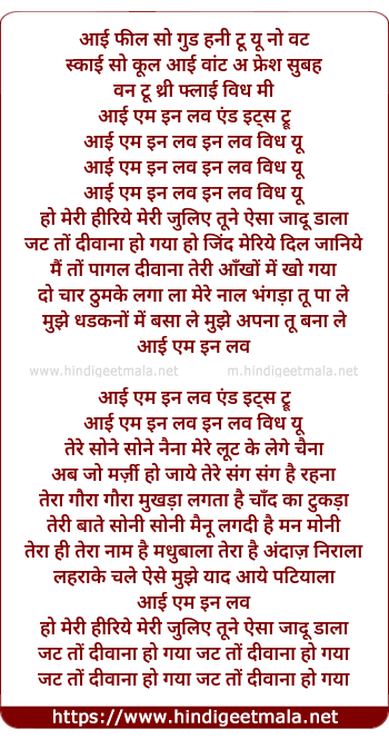 Lyrics of I Feel So Good, I Am In Love - आई फील सो गुड, आई एम इन लव
