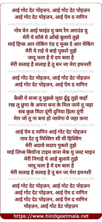 Poetic Translation - Lyrics of I Got That Poison - आई गोट देट पोइज़न, आई गोट देट पोइज़न