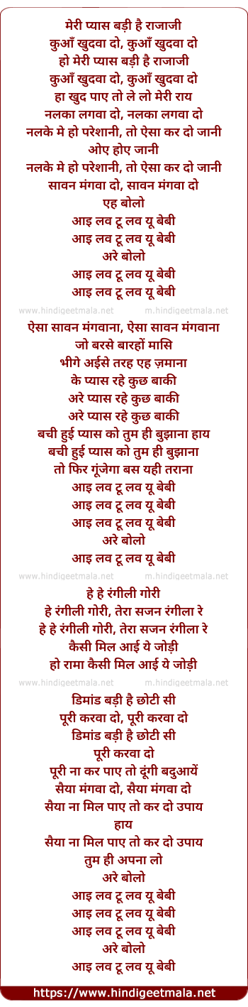 Lyrics of I Love To Love You Baby - आइ लव टू लव यू बेबी