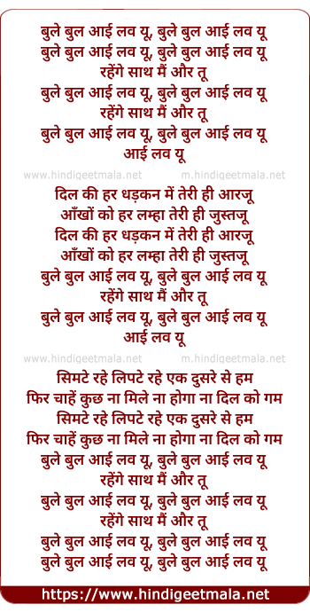 Lyrics of I Love You Bule Bu - आई लव यू, बुले बू