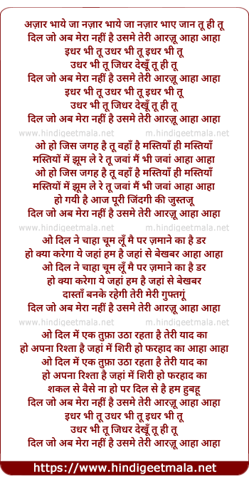 dil jo ab mera nahi hai usme teri aarju aaha aaha