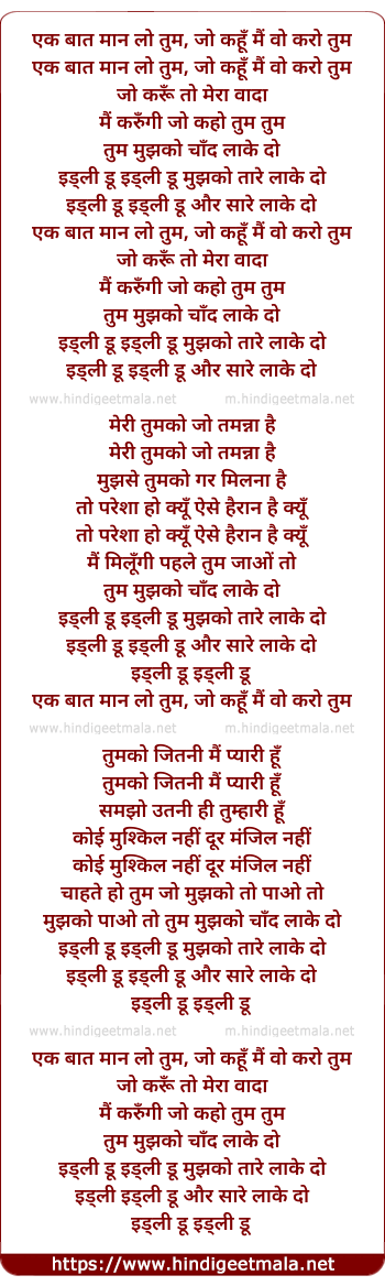 Lyrics of Idli Doo Idli Doo (Mujhko Chand Laakar Do) - एक बात मान लो तुम, जो कहूँ मैं वो करो तुम