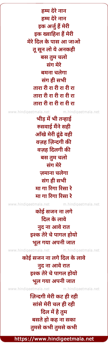 Lyrics of Ik Aarzu Hai Meri - हम्म देरे नान