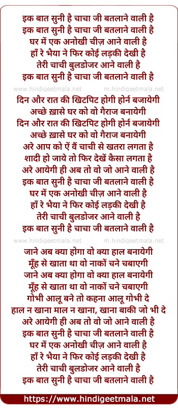 Lyrics of Ik Baat Sunee Hai Chacha Jee - इक बात सुनी है चाचा जी