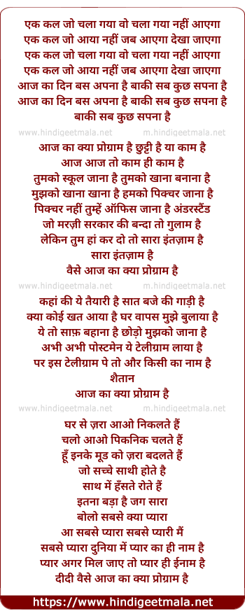 can someone please upload that song aaj ka kya program hai