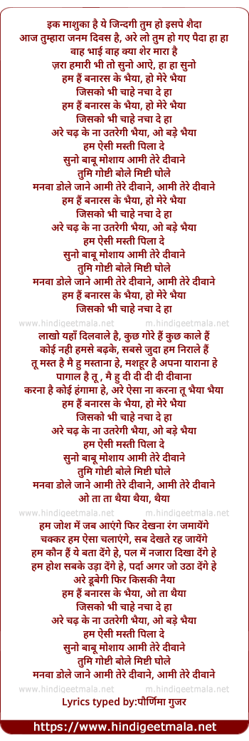 ham hain banaras ke bhaiya, ho mere bhaiya
