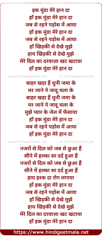 Lyrics of Ik Munda Mere Haan Da - इक मुंडा मेरे हान दा