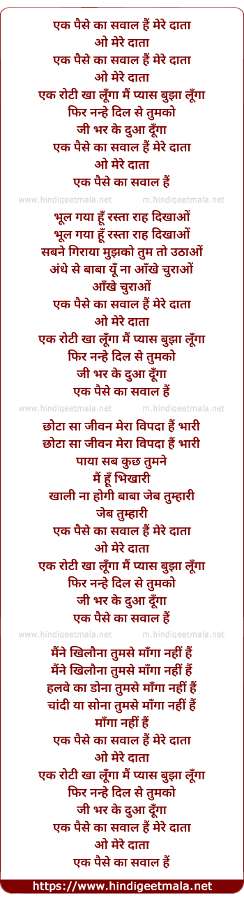 Lyrics of Ik Paise Ka Sawaal Hai Mere Daata - एक पैसे का सवाल है मेरे दाता