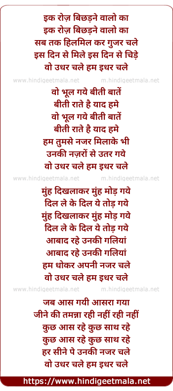 Poetic Translation - Lyrics of Ik Roz Bichadne Waalo Ka - इक रोज़ बिछड़ने वालो का
