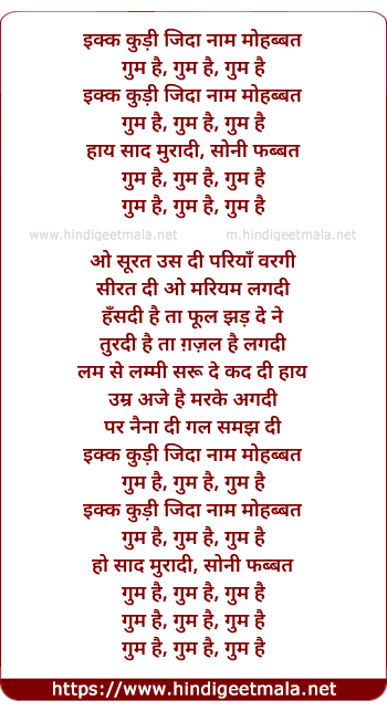 ikk kudi jida naam mohabbat