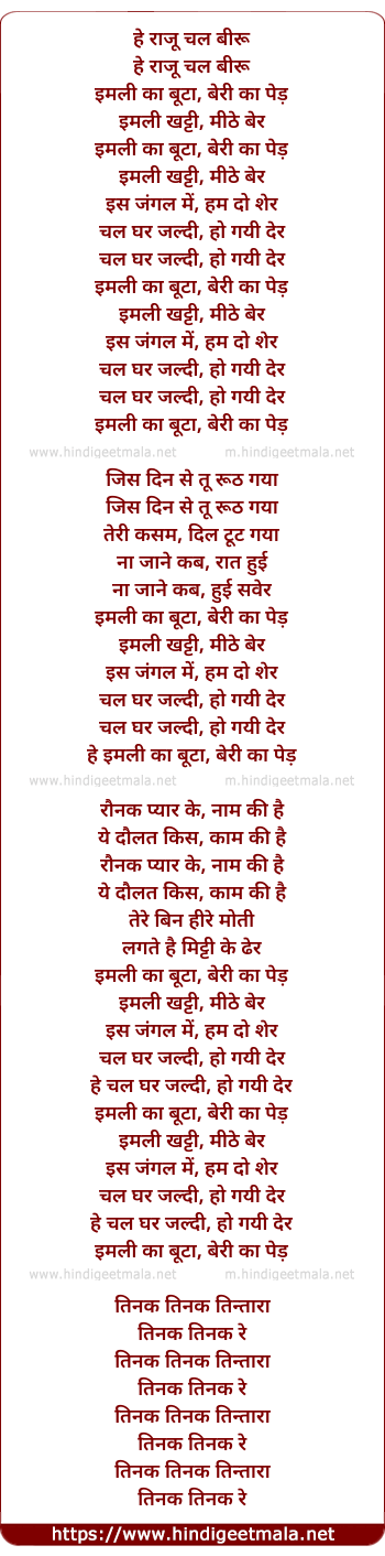 Lyrics of Imli Ka Boota, Beri - इमली का बूटा, बेरी